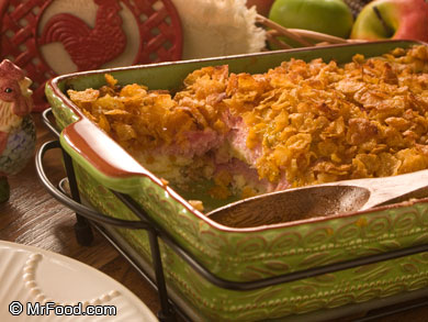 Line baking dish with 6 slices bread. Layer half the ham over bread and sprinkle with 1 cup cheese; repeat layers one more time.