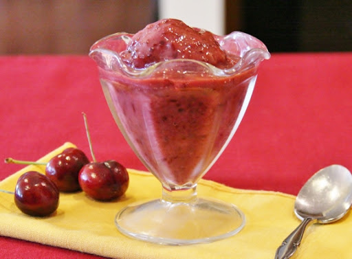 In a blender, combine bananas and cherries, slowly adding almond milk until desired texture is achieved.