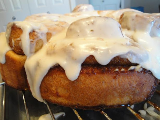 "These are large soft tender buttery rolls, the dough is rolled up from the short end creating more layers of cinnamon filling --- Canadian members use all-purpose flour, and bread flour for U.S. members --- to speed things up place the egg in a cup with very warm water for about 15 minutes to bring to room temperature --- you may of coarse use your own favorite icing for the buns --- since every dough rises at different times, the prep times is only estimated this dough is made using egg which will need slightly more rising time then dough made without --- don't be skimpy with the butter and brown sugar mixture, the more the better! :)" By Kittencalskitchen