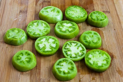 Dip tomato slices in beaten egg mixed with a little water. Dredge in crumbs (bread or crackers) fry quickly in fot fat; salt and pepper.