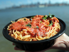 Lower the heat. Add the basil, parsley, oregano, crushed red pepper flakes, if using, and season with salt. Let simmer 20 minutes.