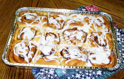 Fantastic recipe; very quick and so easy to make. I was so surprised that you didn't have to wait for them to rise before putting them in the oven. They turned out perfect. I did however sprinkle raisins over the filling just before I rolled it up, only because we like raisins. I keep wanting to take a picture for you but they go so fast. I have made 5 batches so far. My family and the guys on the UTU picket line absolutely loved them. This recipe has definitely become a favorite in my house. Thank you so much for sharing.