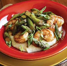 This dish is a quick riff on the Southern classic Shrimp and Grits. Don’t skimp on the Worcestershire; mellowed with butter, it makes a simple yet savory sauce for the shrimp and asparagus. For best flavor, use wild-caught shrimp