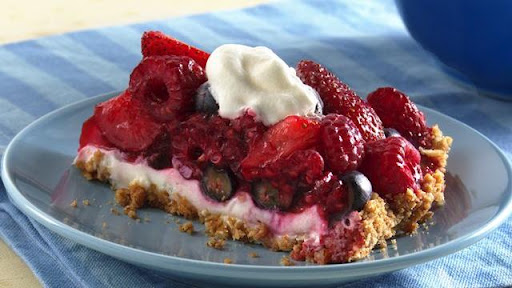 Gently fold blueberries, raspberries and remaining 1 cup strawberries into gelatin mixture. Spoon over cream cheese mixture. Refrigerate about 3 hours or until firm. Serve topped with whipped topping.