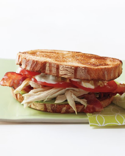 Lightly toast bread. Divide avocado among 4 slices, along with bacon, tomato, and chicken. Top with eggs, and drizzle with blue cheese dressing. Sandwich with remaining slices.