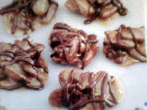 3. In a microwave-safe bowl, melt the chips and shortening; stir until smooth. Drizzle over cluster. Chill until firm. Store in the refridgerator.