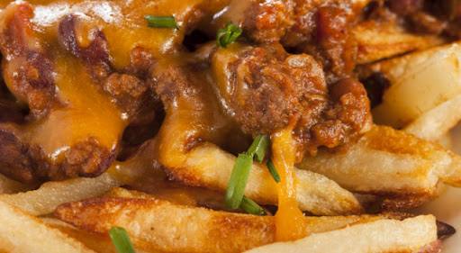 Place French fries on a large platter, spoon meat mixture over the fries, sprinkle with onion and pickles (or any other garnish, or none. These are delicious on their own with the garnish) , and evenly drizzle cheese sauce over everything.