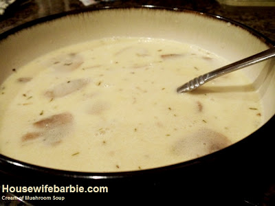 Melt the margarine in the pan with the mushrooms. If your mushrooms are large, dice or chop them if you wish. Add the garlic, onion and thyme. Cook about 5 minutes until the mushrooms are cooked and the juice in the pan is getting thick. Stir in the flour. Add the vegetable stock. Simmer for about 10 minutes. Add the cream and turn off the heat. Season with salt and pepper to taste. You can serve right away or keep warm over low heat. Just don't boil after the cream is added.