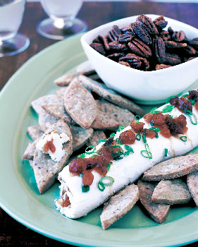 Blue Cheese Shortbread Leaves with Cream Cheese-Chutney Roulade
