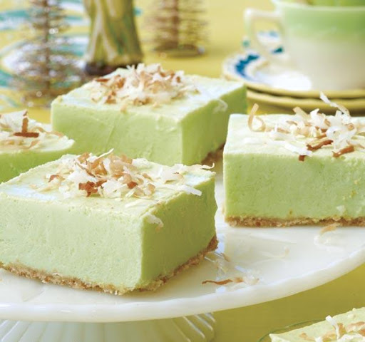 Blend together remaining coconut, vanilla wafer crumbs, butter and sugar; press into an 11”x7 baking pan. Bake at 375 degrees for 6 to 7 minutes; cool. Stir together gelatin and boiling water; mix until gelatin dissolves. Add limeade, ice cream, salt and food coloring, stirring until smooth. Pour over crust; sprinkle with reserved toasted coconut and pecans, if desired. Cover and freeze until firm. Let stand at room temperature a few minutes before serving.