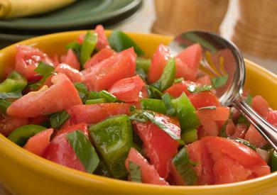 Tomatoes are at their tastiest when eaten at room temperature. If you're assembling this salad in advance and refrigerating, just let it sit out on the counter for 30 minutes or so before serving.