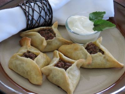 This Middle Eastern appetizer recipe is very easy to make. It is called an esfija and is a delicate and delicious treat. It is made with meat, mint and Greek yogurt or Kefir cheese.