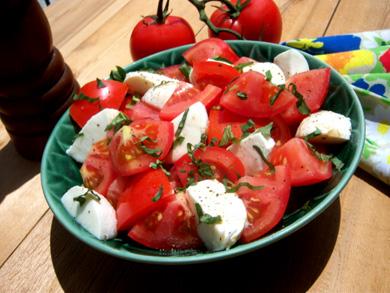 Combine remaining ingredients in a small bowl; mix well then pour over tomato and cheese mixture, tossing to coat well.
