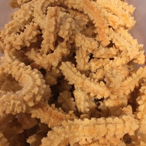 Add pepper and flour gradually. Use star attachment in extruder and turn out line on cookie sheet. Cut in 3-inch pieces and bake in 350°F oven for about 20 minutes.