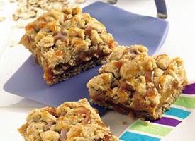 5. With small spoon, drizzle caramel topping over bars. For bars, cut into 8 rows by 6 rows. Store in refrigerator.