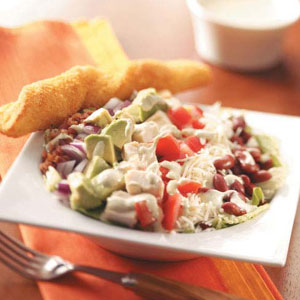 Spice up dinner tonight with a hearty salad that's got something in it for everyone! I made this cobb salad recipe for a party, and it was a huge hit. Hot sauce gives it a little kick, while cilantro and avocado cool things off.