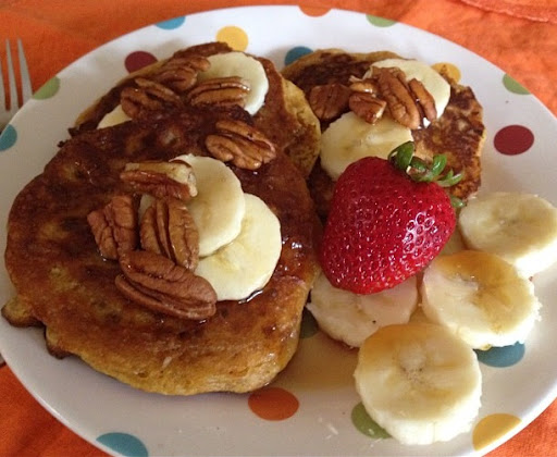 Lightly oil a large skillet with vegetable or coconut oil and preheat over medium heat. Pour batter in ¼-cup measurements into the pan. Cook 2-3 minutes or until edges are firm. Flip and cook other side 1-2 minutes until golden brown. Serve with pure maple syrup.