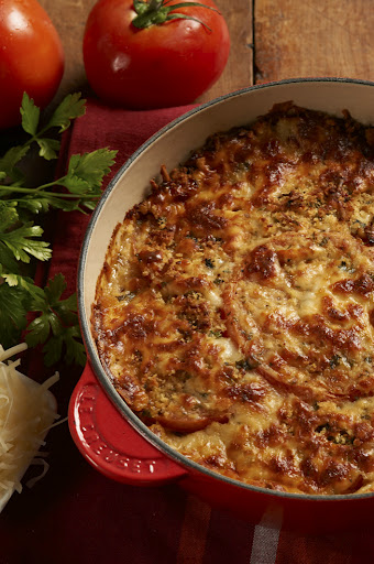 Drizzle olive oil over the top and cover with foil. Bake for 30 minutes. Remove the foil and bake for an additional 10 minutes, or until bubbly and the cheese has browned.