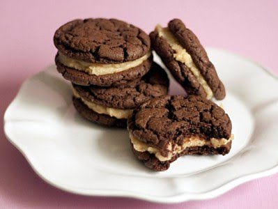 Spread about 2 Tablespoons of frosting onto the bottom of one cookie and then place another cookie on top, bottom sides facing in. Repeat with remaining cookies and frosting.