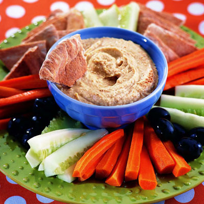 "I created this recipe through modifications of other hummus recipes. It suits my family's taste just right and is healthier than others I have seen. We eat it with honey wheat pretzel rods."