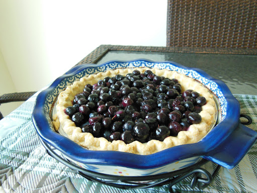IN SAUCEPAN COMBINE BLUEBERRIES TWO CUPS, BUTTER,FLOUR,SUGAR,LEMON JUICE.COOK ON MED HEAT FOR ABOUT 5 MINS. POUR OVER BERRIES.THEN COOL AT ROOM TEMP. BEST WHEN SERVED COLD GOOD WITH ICE CREAM OR COOL WHIP