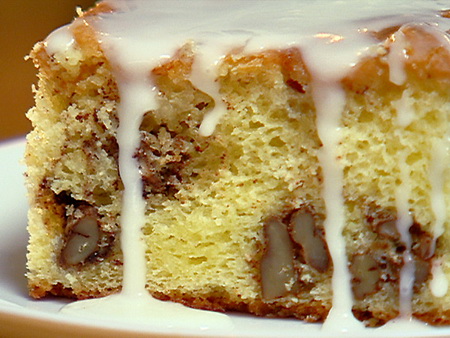 Geez - is this cake good!!! We had a guest for dinner the night I made this. The guest ate 2 pieces and took some home with him. The only change I will make the next time I make it (and there will be many more next times!!) is I will double the amount of glaze and make it a bit thicker. The glaze on my first try was a bit thin and alot of it ran off of the cake. I spooned some back on but it would be easier to just make more and have it stay put. This cake is easy and delicious!