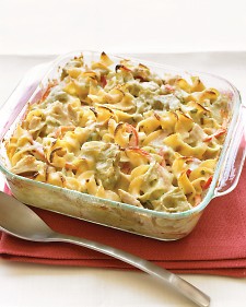 3. Remove from heat; add mixture to noodles in pot, along with tuna, artichoke hearts, and scallions. Season with salt & pepper, and toss. Divide between prepared baking dishes, and sprinkle with Parmesan. Bake until golden and bubbling, about 20 minutes.