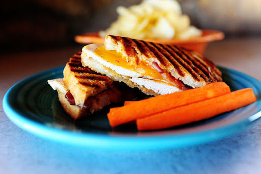 On the ranch-covered slices of bread, place a slice of cheese, a piece of chicken, 2 slices of bacon and a second slice of cheese. Top each with the mustard-covered slice of bread. Butter the outsides of the bread generously with the remaining 4 tablespoons butter, then grill in a panini maker. (If you do not have a panini maker, you can grill the sandwiches in a skillet, laying a heavy skillet on top of the sandwiches to press them together. Turn to grill the other side in the same way.)