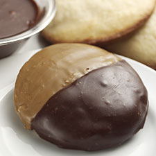 I tried these today for a birthday party and they were really good. I don't have muffin top pans, but I used whoopie pie pans and they worked out great. I made a double batch and had to microwave the chocolate icing a few times because it would get a bit thick. This worked well a few times, but after that the icing was progressively thicker and didn't spread as well. If you're making more than a single batch, you might want to make the chocolate icing twice so that you don't have to microwave it more than maybe once. I made both icings, and then also made another batch of icing with white chocolate (I just used white chocolate chips in place of bittersweet chocolate) and made both Black & Tan cookies and Black & White Cookies. Thanks for another great recipe!