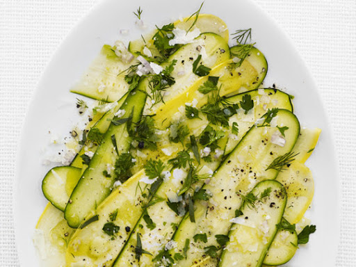 Using a mandolin or a very sharp knife, slice zucchini into very thin lengthwise slices. Overlap zucchini in 1 layer on a plate; season with salt and pepper. Drizzle over the olive oil and lemon juice and scatter with leeks. Using a vegetable peeler, shave very thin slices of Parmesan over the leeks. Garnish with mint leaves