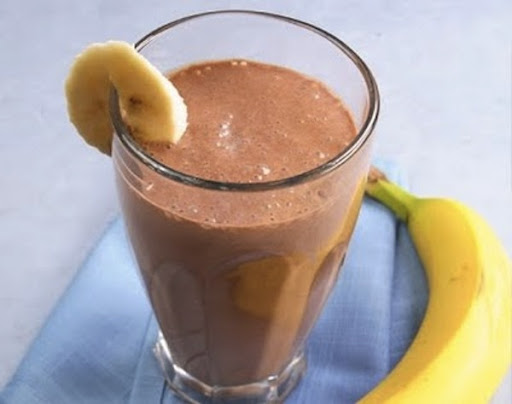 Measure the milk and PB into a blender. With the motor running, add the banana and ice cream, blending until the mixture is all shook up (hee hee).