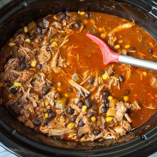 Thirty minutes before serving, pull chicken breasts apart with two forks. Stir and continue cooking. Top with fresh cilantro or any other desired toppings