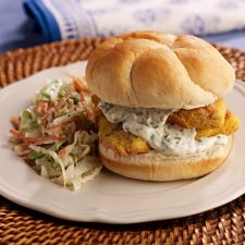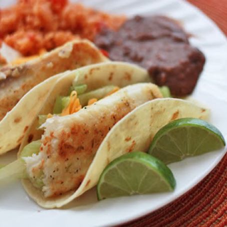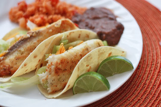 To serve, break fish into large pieces and serve in tortillas with honey-lime sauce, lettuce and other favorite toppings.