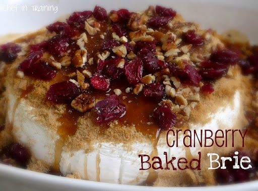 After cheese has baked, sprinkle chopped pecans and craisins over the cheese. Then drizzle sauce over.