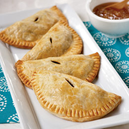 Place the pies on a greased baking sheet. Brush the tops with the remaining egg wash and make a 1/2-inch-long slit in the top of each one. Bake the pies until they're golden brown, about 20 to 25 minutes. Serve with your favorite mint or fruit chutney.