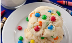 In a large bowl, beat cake mix, oil, and eggs 3 to 4 minutes, or until well blended. Using a spoon, stir in M&M baking bits.