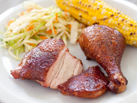 placed on top of the coals smoldered for about 45 minutes—just long enough to infuse the chicken with smoky (not sooty) flavor.