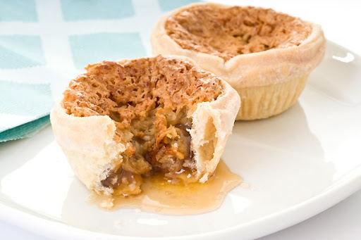 Place into a preheated 450’F (220’C) oven for 5 minutes. Reduce heat to 350’F (180’C) an open door slightly for 15 – 20 seconds to bring temperature down rapidly. Bake for 15 minutes or until bubbling and deep golden brown. Let cool for 10 – 15 minutes before removing tarts from the pan.