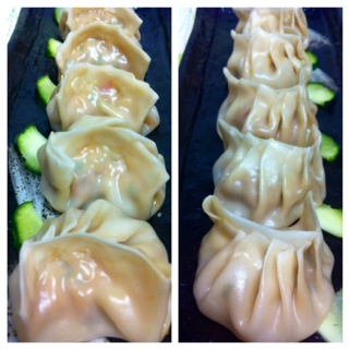 Gyoza is also called dumpling and pot stickers. It can be boiled, steamed, pan fried or deep fried. The steamed ones are more healthier than fried and the wrappers are little chewy than boiled. They can be used any kinds of meat and/or vegetables. Variation of the dumplings are endless. Here I add tomato and chives in the filling to taste juicy and tender. Enjoy!
