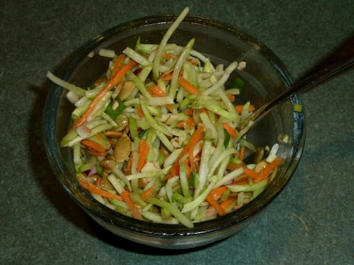 Make dressing w/oil, vinegar, sugar, and add the 2 packets of flavoring from the Ramen noodles.