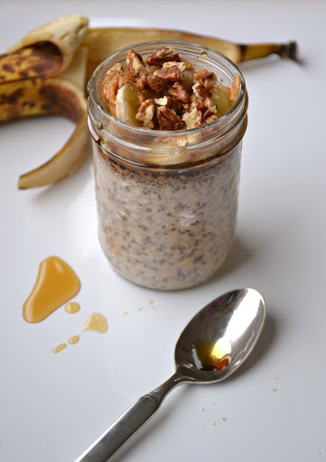 Before serving, microwave sliced bananas and peanut butter in a small microwave-safe bowl for 20 seconds, or until bananas are soft and peanut butter is melted. Add to chilled oats.