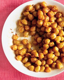 Chickpeas, once roasted, take on the flavor and texture of nuts, making them a fun snack with drinks. Prepare the simple appetizer in under 15 minutes for any holiday cocktail party.