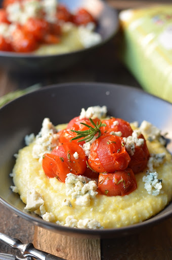 BLUE CHEESE POLENTA WITH ROSEMARY BLISTERED TOMATOES