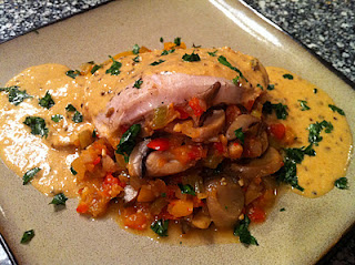 Vegetable Hash Stuffed Pork Chops With Pepper Jack Cream Sauce