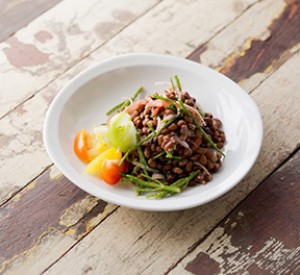 - 1 cup Georgia sea beans, blanched and shocked without salt