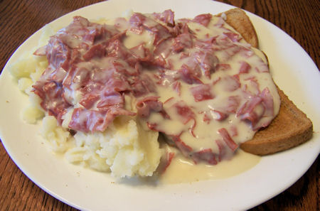 Add cream, salt and pepper and let it come to a slow boil. Melt butter and stir in flour; add to milk and beef mixture, and let it