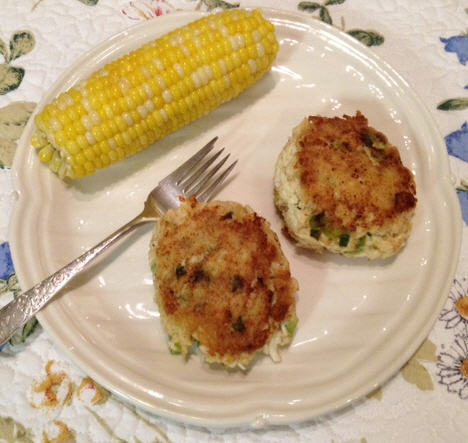Allow crab cake to brown before turning as you only want to turn once. Also, allowing it to brown will minimize risk of the crab cake falling apart when you turn. I place a spatula under the crab cake and another spatula on top and gently turn to brown on the other side. Remove from skillet to serving plate.