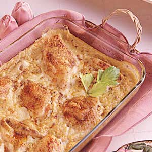 2. Bake at 350 degrees for 2 1/2 hours. DO NOT OPEN COVER WHILE THIS IS COOKING!!! (This is why it's called no-peek chicken! )