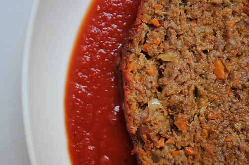 Cook until the center of the meatloaf registers 160 with a meat thermometer. This will take around 2 hours, depending how thick you form the meatloaf. Let the meatloaf sit for 15 minutes before you cut. Use additional sauce to top cut meatloaf if you desire.