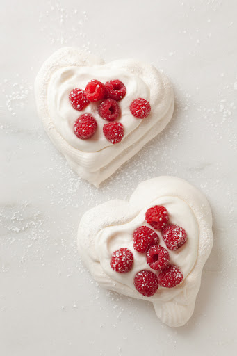 Remove the hearts from parchment paper with a spatula and fill center with Chantilly Cream and top with fresh fruit and a sprinkle of sweetner.